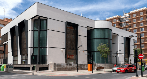 Edificio que alberga al Centro Sociocultural del Barrio del Ensanche de Albacete. Conformado por cuatro plantas sobre rasante y planta semisótano. Actuaciones tendentes a la mejora de la eficiencia energética mediante aislamiento térmico en exterior de fachada tipo ETICs; protegida en planta baja mediante zócalo de aplacado de gres. Otras actuaciones han consistido en aumento del aislamiento en cubiertas planas e inclinadas, sustitución de carpinterías exteriores por carpintería de aluminio con rotura de puente térmico y de vidrios por doble cámara y bajo emisivos; así como la incorporación de elementos para protección de soleamiento mediante celosías.
